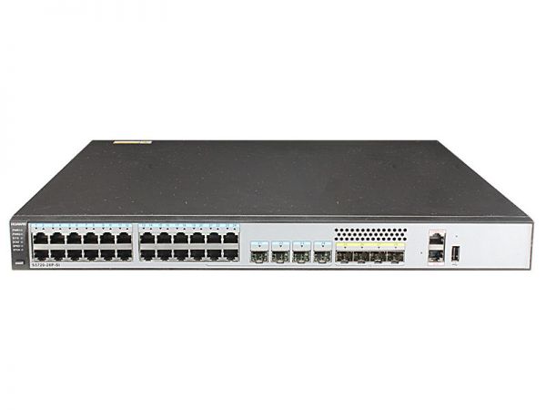 Huawei S5720-28P-SI-AC supports twenty-four Ethernet 10/100/1000 ports, four of which are dual-purpose 10/100/1000 or SFP, and 4 x Gig SFP. It offers double hot-swappable AC/DC power supplies, one AC power module is configured by default.